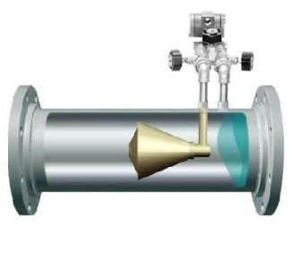 錐形流量計(jì)是在管道中芯處懸掛一錐形節(jié)流件,錐形件阻礙介質(zhì)的流動(dòng),重塑流速曲線,在錐形性的下游可立即形成低壓區(qū),管道上游的正壓同經(jīng)節(jié)流件節(jié)流后的下游的負(fù)壓之間有一差壓,將正、負(fù)壓用取壓口取出,正壓口位于管道的上游,負(fù)壓口位于錐體的末端,通過(guò)測(cè)量?jī)烧咧g差壓,根據(jù)伯努力方程即可計(jì)算出管道中的流量,錐體位于管線中芯,可對(duì)所測(cè)介質(zhì)的流速曲線進(jìn)行優(yōu)化,因此測(cè)量精度高,對(duì)儀表上、下游的直管段要求低。