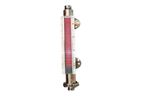 型號為:HD-UFZ,安裝于桶槽外側延伸管上,桶槽內部的液位能由翻板指示器清楚得知。旁路管外側亦可加裝磁性開關,做為電氣接點信號輸出,或裝置液位傳送器做遠距離液位信號傳送及液位控制。該液位計是具有可靠的放心性儀表。由于具有磁性耦合隔離密閉結構。尤其適用于易燃、易爆和腐蝕有毒液位檢測。從而使原復雜環境的液位檢測手段變得簡單和可靠放心。液位計具有就地顯示的直讀式特性。不需多組液位計組合。有著單體進行全量程測量。設備少開孔,顯示清晰,標志醒目,讀數直觀等優點。當液位計直接配帶顯示儀時可省去該系統信號檢測的中間變送從而提高其傳輸精度。